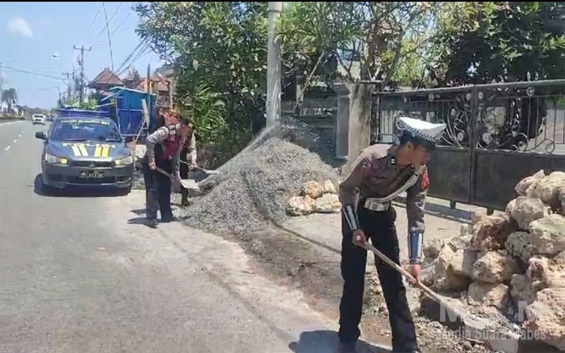 Dalam kegiatan patroli ini, petugas menemukan tumpukan material bangunan seperti pasir, krokol, dan batu yang menutupi sebagian badan jalan di depan Pura Puseh, jalur menuju Pelabuhan Gilimanuk. Kondisi ini berpotensi besar mengakibatkan kecelakaan lalu lintas bagi pengendara yang melintas.