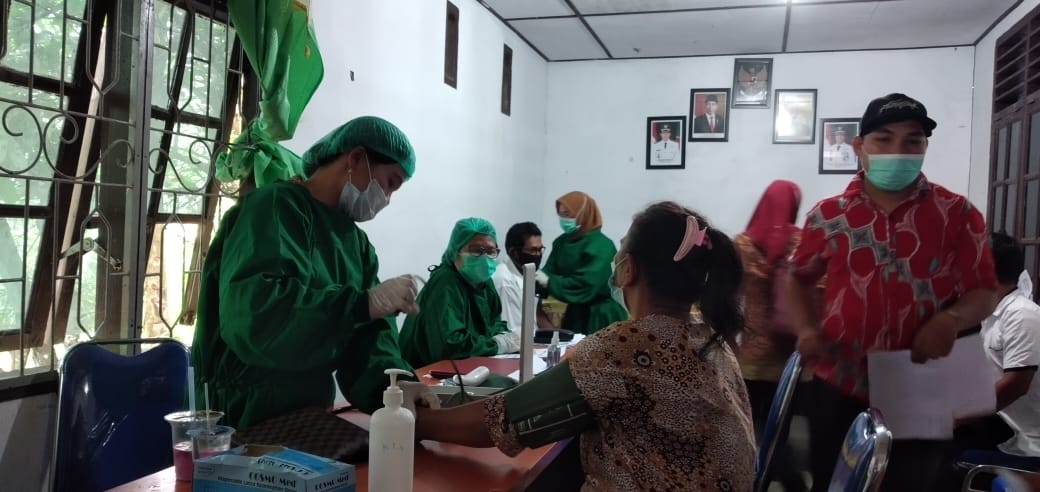 Satu orang peserta yang datang langsung di data dan diperiksa oleh petugas medis. Para penerima vaksin akan melalui proses penyaringan awal antara lain ada atau tidaknya penyakit penyerta, pengecekan tekanan darah, dan pernah atau tidak memastikan Covid-19.