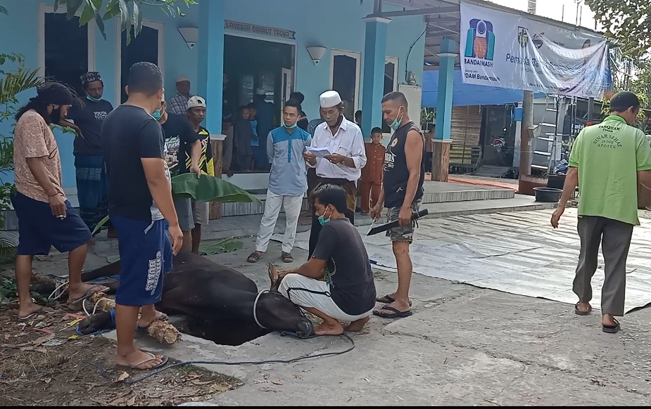 MediaSuaraMabes, Banjarmasin – Warga Komplek Herlina Perkasa RT 66 yang berada di Jalan Padat Karya pada siang tadi, Selasa (20/07) berkumpul di Langgar Darut Taqwa untuk pelaksanaan penyembelihan hewan qurban, Sungai Andai, Banjarmasin Utara.