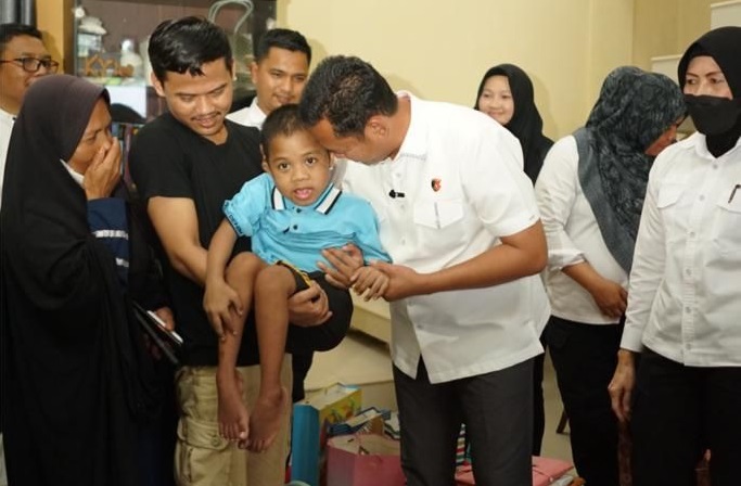 MediaSuaraMabes, Pekanbaru – Malangnya nasib anak penyandang difabel berinisial MR (10) membuat aparat kepolisian dari Ditreskrimum Polda Riau tak kuasa menahan belas kasihan, dan tergerak memberikan bantuan. Bantuan yang diberikan berupa baju sekolah hingga kursi roda kepada bocah malang tersebut.