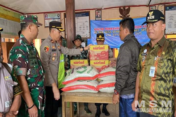 MediaSuaraMabes, Jepara – Sebagai bentuk kepedulian kepada korban terdampak banjir di wilayah Kabupaten Jepara, Kapolres Jepara AKBP Warsono, S.H., S.I.K., M.H yang diwakili oleh Wakapolres Jepara Kompol Berry, ST., SIK., MH bersama Kasdim 0719/Jepara Mayor Arm Syarifudin, PJU Polres Jepara dan unsur Fokopincam Kedung serta Pemerintah Desa setempat melaksanakan kegiatan pemberian bantuan logistik dan monitoring lokasi bencana banjir di Desa Sowan Kidul Kecamatan Kedung Kabupaten Jepara, Selasa (28/02/23).