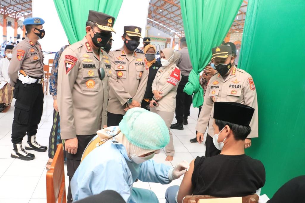 Di Ponpes Sunan Pandanaran, Kapolda DIY menyaksikan secara virtual pada saat Presiden Jokowi dan Kapolri menyapa langsung beberapa daerah secara virtual pelaksanaan vaksinasi serentak tersebut.