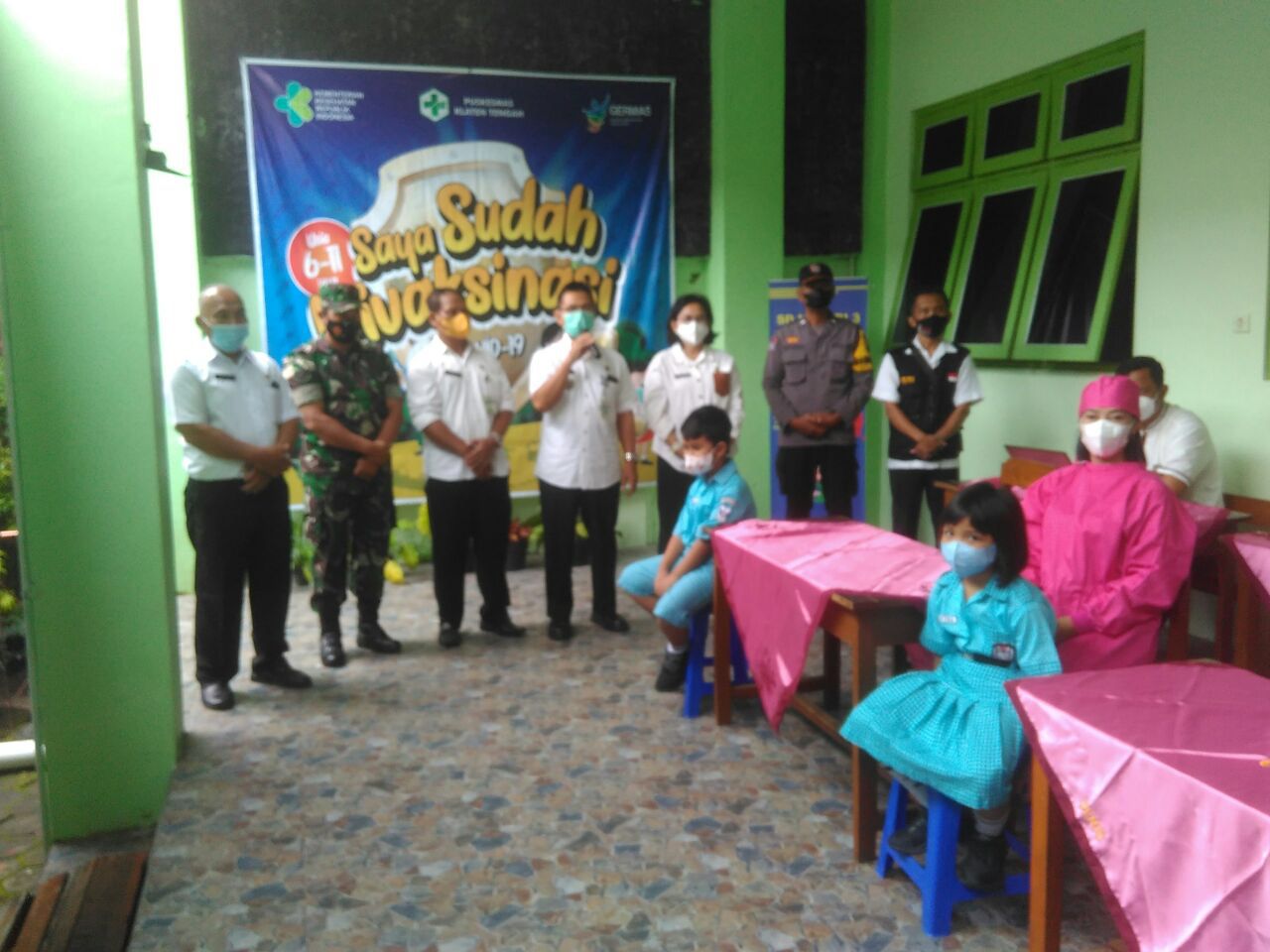 Babinsa TNI dan Babinkantibmas POLRI juga hadir dalam pendampingan pelaksanaan vaksinasi anak di Sekolah Dasar Negeri 3 Klaten.
