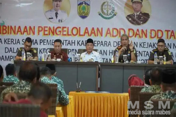 MediaSuaraMabes, Jepara – Kejaksaan Negeri Jepara bersama kepala desa (Kades) se-Kabupaten Jepara, Jawa Tengah, menyelenggarakan pelatihan dan penyuluhan tentang penggunaan dana desa maupun alokasi dana desa. Kegiatan tersebut juga dilakukan penandatanganan kerja sama atau Memorandum of Understanding (MoU) tentang Bantuan Hukum, Pertimbangan Hukum dan Tindakan Hukum lainnya Bidang Perdata dan Tata Usaha Negara.