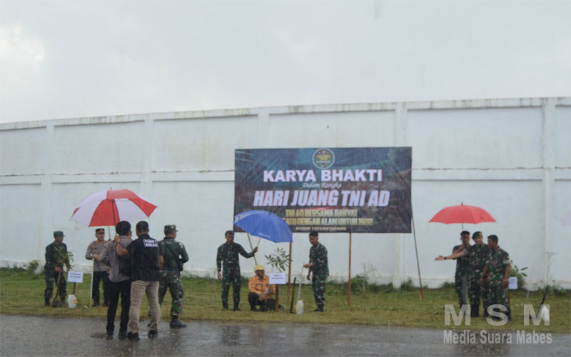 MediaSuaraMabes, Ketapang –Dalam rangka memperingati Hari Juang TNI AD Ke-78 Tahun 2023, Dandim 1203/Ktp, Letkol Czi Agus Ikwanto, S.E, M. Han bersama forkopimda kembali melaksanakan Karya bakti TNI yaitu penanaman pohon di seputaran stadion Tentemak Ketapang. Kamis (14/12/2023).