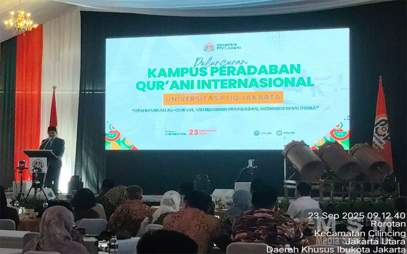 MediaSuaraMabes, Jakarta Utara – Universitas PTIQ Jakarta resmi meluncurkan Kampus Peradaban Qur’an Internasional dalam sebuah acara yang berlangsung di Jalan Malaka 1 RT 010/RW 012, Kelurahan Rorotan, Kecamatan Cilincing, Jakarta Utara, pada pagi hari tanggal 23/9/2025 pukul 09.00 WIB.