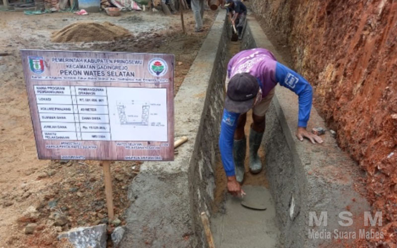 MediaSuaraMabes, Pringsewu – Percepatan dan infrastruktur dalam menyelesaikan pembangunan telah berjalan baik dan dapat dirasakan manfaatnya oleh masyarakat pengguna, untuk pembangunan Drainase dan TPT yang sumber dana dari Dana Desa (DD) tahap pertama tahun 2024 tepatnya di Pekon Wates Selatan, Kecamatan Gadingrejo, Kabupaten Pringsewu, Minggu 2 Juni 2024.