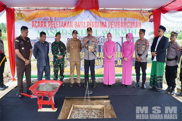 MediaSuaraMabes, Kubu Raya – Kapolda Kalimantan Barat, Inspektur Jenderal Polisi Pipit Rismanto, S.I.K., M.H., melakukan peletakan batu pertama untuk pembangunan Masjid Baitul Mukmin di kompleks Polres Kubu Raya, yang terletak di Jalan Mayor Alianyang, Desa Durian, Kecamatan Sungai Ambawang, Kabupaten Kubu Raya pada hari Senin (12/6/23) pagi,