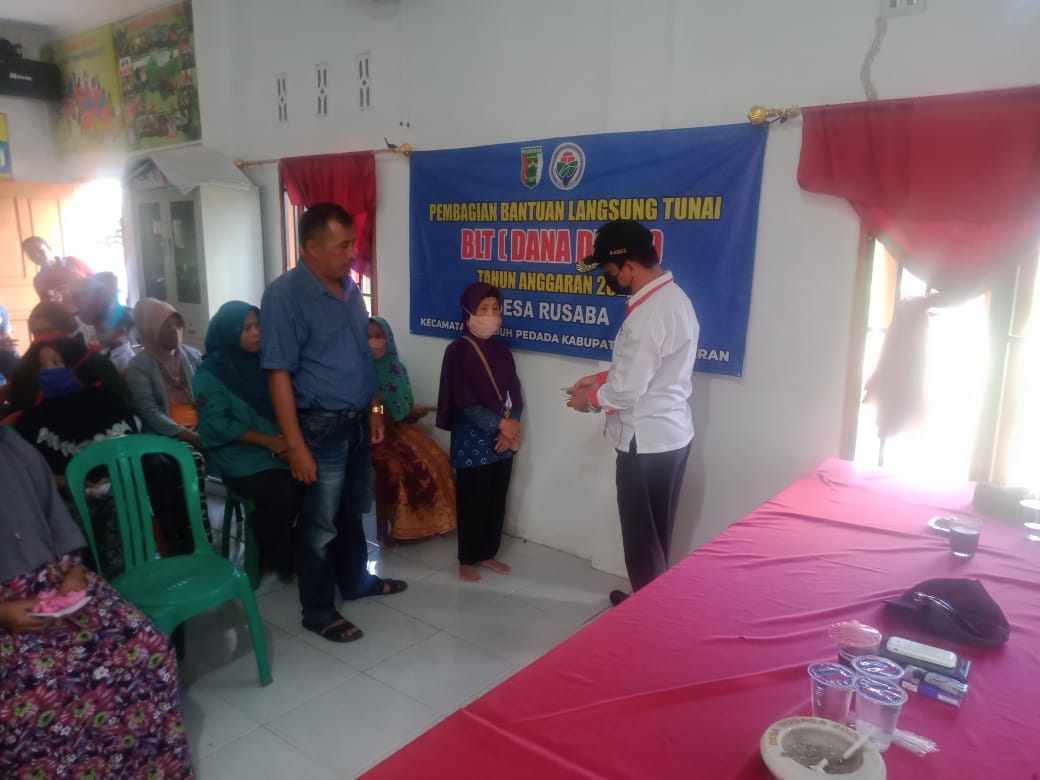 Acara penyaluran BLT DD Di berikan langsung oleh kepala desa Rusaba dengan di hadiri oleh camat punduh pedada, Anggota BPD, tokoh masyarakat dan aparatur desa,