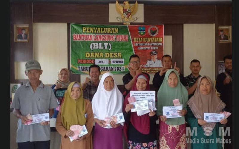 MediaSuaraMabes, Garut Jabar – Pemerintah desa Karyasari, Kecamatan Banyuresmi, Kabupaten Garut, Salurkan bantuan langsung tunai yang bersumber dari dana desa pemerintah pusat (BLT DD). BLT DD tersebut disalurkan terhadap 40 orang kelompok penerima manfaat (KPM) pada Kamis 19 September 2024.