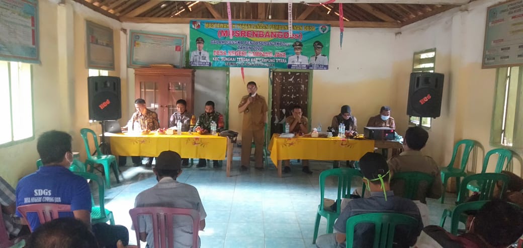 SuaraMabes, Lampung Utara – Menata Program pembangunan tahun 2022 Desa Negri Campang Jaya Kecamatang Sungkai Tengah hari senin (23-08-2021) melaksanakan Musyawarah Rencana Pembangunan Desa (MusrenbangDes).