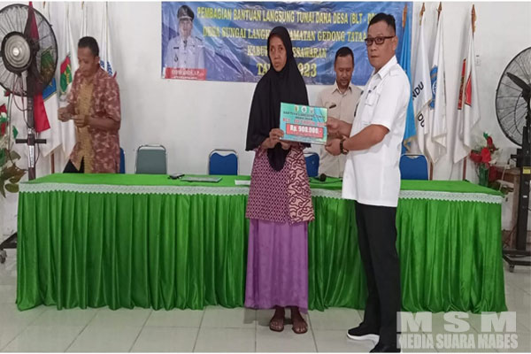 MediaSuaraMabes, Pesawaran – Pemdes Sungai Langka kecamatan Gedong Tataan Telah Menyalurkan Bantuan Langsung Tunai BLT DD Tahap 1 ( januari/februari/maret ) tahun 2023 bertempat di balai desa Sungai Langka, Rabu 05/04/2023.