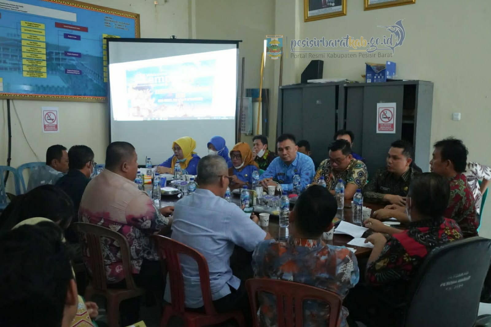 MediaSuaraMabes, Pesisir Barat – Kepala Dinas Kominfotik & Persandian Suryadi,S.IP.,MM. Menginformasikan bahwa Pemerintah Kabupaten Pesisir Barat yang dipimpin Asisten Bidang Pemerintahan dan Kesra Audi Marpi,S.Pd.,MM menerima kunjungan kerja Pemerintah Kabupaten Muara Enim yang dipimpin oleh Asisten Bidang Pemerintahan dan Kesra Drs.H.Asarli Manusia,M.Si. Kabupaten Muara Enim beserta rombongan yang diselenggarakan di Ruang Rapat Sekda Kab.Pesisir Barat.Jumat (05/08/2022).
