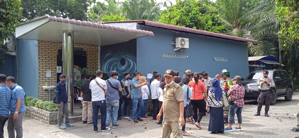 SuaraMabes, Langkat — Tidak memiliki izin, Pemerintah Kabupaten Langkat menyegel Caffe Champion yang berada di Desa Emplasmen, Kecamatan Sei Bingai, Kabupaten Langkat, Jumat (9/4/2021).