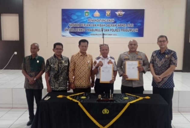 MediaSuaraMabes, Prabumulih (Sumsel) – Pemerintah Kota (Pemkot) Prabumulih melalui Wakil Walikota (Wawako) H. Adriansyah Fikri tandatangani Naskah Perjanjian Hibah Daerah (NPHD) sinergi pelaksanaan program Mabes Polri yaitu, penerapan tilang Elektronik/Electronic Traffic Law Enforcement (E-TLE) dengan Kepolisian Resort (Polres) Prabumulih di Aula Besar Mapolres tersebut, Kamis (27/10/2022) siang.