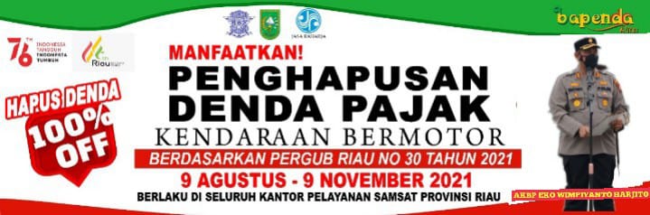 SuaraMabes, Rokan Hulu (Rohul ) – Kabar Gembira datang dari Pemerintah Provinsi ( PemProv) Riau, Pasalnya PEMPROV RIAU mengeluarkan kebijakan pemutihan pajak atau penghapusan denda pajak kendaraan bermotor ( PKB ) secara penuh mulai 9 Agustus hingga 9 November 2021, Selasa (24/08). Kebijakan ini dikeluarkan Pemprov Riau sehubungan dengan Masa Pandemi Covid -19 yang membuat Masyarakat Riau Mengalami kesulitan dalam berbagai aspek Kehidupan ,termasuk Kesulitan Ekonomi.