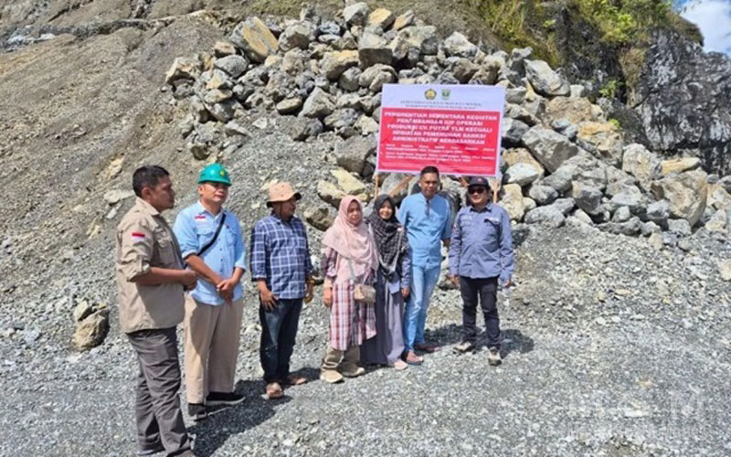 MediaSuaraMabes, Padang Sumbar – Pemerintah Provinsi (Pemprov) Sumatera Barat (Sumbar) memasang plang penghentian sementara kegiatan tambang galian C pada tiga perusahaan di Nagari Aia Dingin, Kecamatan Lembah Gumanti, Kabupaten Solok, untuk mengantisipasi kerusakan ruas jalan nasional di lokasi tersebut.