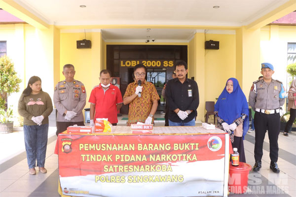 MediaSuaraMabes, Singkawang Kalbar – Satuan Resnarkoba Polres Singkawang melaksanakan kegiatan pemusnahan barang bukti Narkotika yang dilaksanakan di Mako Polres Singkawang Jalan Firdaus H.R.II Kota Singkawang, Jumat pagi (5/5/2023).