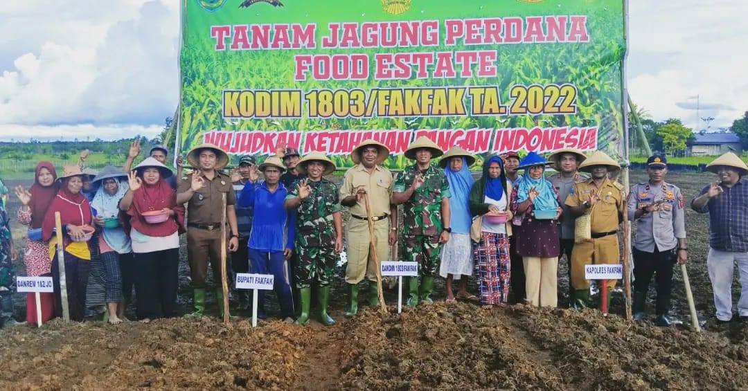 MediaSuaraMabes, Fakfak – Komandan Kodim (Dandim) 1803/Fakfak Letkol Inf Tri Handoko Wicaksono menghadiri kegiatan penaman jagung Perdana Food Estate Kodim 1803 Fakfak TA 2022 Bertempat Desa Pinang Agung Jalur Lima, Distrik Bomberay, Kabupaten Fakfak Papua Barat, Senin (08/08/2022).
