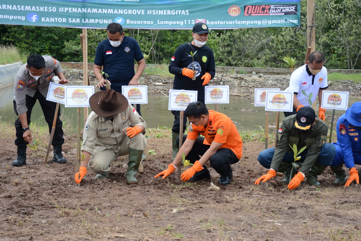 Dalam sambutannya Kepala Kantor Pencarian dan Pertolongan Lampung Jumaril, S.E., M.M., menyampaikan bahwa penanaman mangrove ini merupakan salah satu bentuk partisipasi Basarnas dalam mitigasi bencana di wilayah pesisir Lampung, dan juga merupakan upaya untuk menjaga kelestarian biota laut di kawasan pantai. Pada penanaman mangrove ini Kantor Pencarian dan Pertolongan Lampung bekerja sama dengan HNSI kab. Pesawaran akan melaksanakan penanaman sebanyak 5.000 bibit mangrove di perairan wilayah kab. Pesawaran.