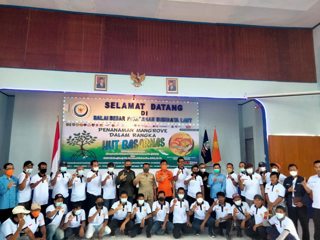 MediaSuaraMabes, Pesawaran – Kantor Pencarian dan Pertolongan bekerja sama dengan HNSI dan Balai Persemaian Tanggamus mengadakan acara penanaman mangrove dalam rangka memeriahkan HUT Basarnas ke 50 tahun. Acara ini dilaksanakan pada Sabtu, 5 Februari 2022 di Balai Besar Perikanan dan Budidaya Laut Lampung.