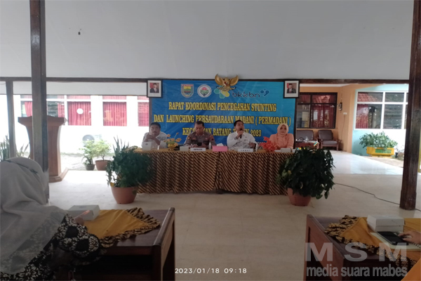 MediaSuaraMabes, Batang – Forkopimcam Batang menggelar kegiatan Rapat Koordinasi Pencegahan Stunting sekaligus melaunching Persaudaraan Madani (Permadani) bersama penggerak PKK kecamatan di pendopo Kecamatan setempat,Rabu (18/1/23).