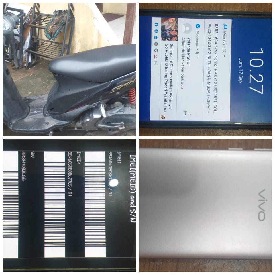 Mendapat informasi tersebut, petugas polsek Delitua yang langsung mendatangi tempat kejadian langsung mengamankan pelaku berikut barang bukti berupa ( Satu) Unit Handphone warna Gold merek Vivo Y71, 1(satu) unit Handphone warna hitam merek asus dan 1(satu) unit sepeda motor jenis Suzuki Spin 125 warna hitam BK 5680 SAB (yang digunakan pelaku).