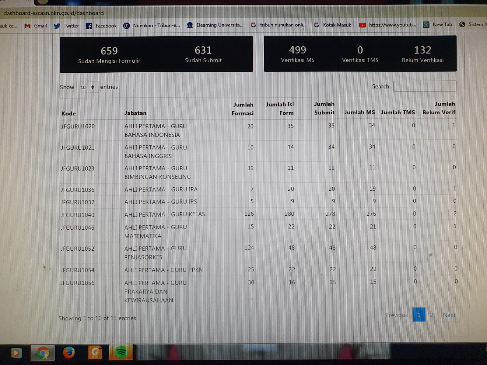 Menurut Kahar, Data di Dashboard SSCASN 2021 BKN sampai tanggal 27/07/2021 pukul 07.00 WIB, sebanyak 659 yang sudah mengisi formulir dan sudah Submit 631 berkas. Dan telah di Verifikasi Memenuhi Syarat (MS) sebanyak 499 berkas, Verifikasi Tidak Memenuhi Syarat (TMS) Nihil dan Belum Verifikasi sebanyak 132 berkas.Dan untuk data final yang masih diverifikasi masih ditunggu informasinya.