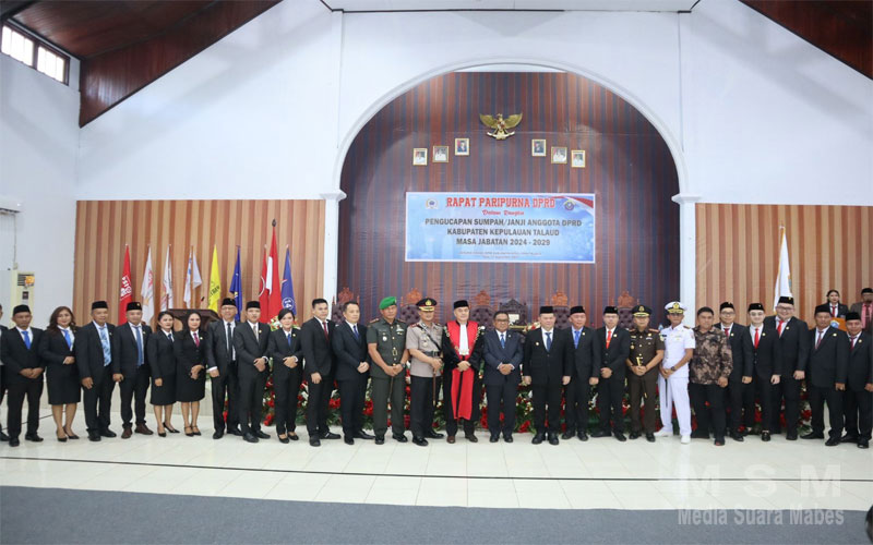 MediaSuaraMabes, Talaud – Dewan Perwakilan Rakyat Daerah Kabupaten Kepulauan Talaud Periode 2019 – 2029 resmi menjabat, Setelah diambil sumpah oleh Kepala Pengadilan Negeri Melonguane di Gedung Sidang DPRD Kepulauan Talaud, Sabtu (21/09/2024).