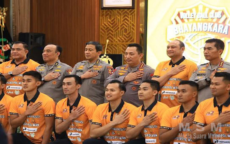 MediaSuaraMabes, Jakarta – Kapolri Jenderal Pol Listyo Sigit Prabowo didampingi Irwasum Polri Komjen Pol Ahmad Dofiri, Kabareskrim Polri Komjen Pol Wahyu Widada, Asisten Kapolri Bidang SDM Irjen Pol Dedi Prasetyo serta Kadiv Humas Polri Irjen Pol Sandi Nugroho menyambut tim voli Jakarta Bhayangkara Presisi dan Popsivo Polwan yang dipimpin Manajer tim Irjen Pol Pipit Rismanto, Rabu malam (07/08/2024) di Rupatama, Mabes Polri, Jakarta selatan.