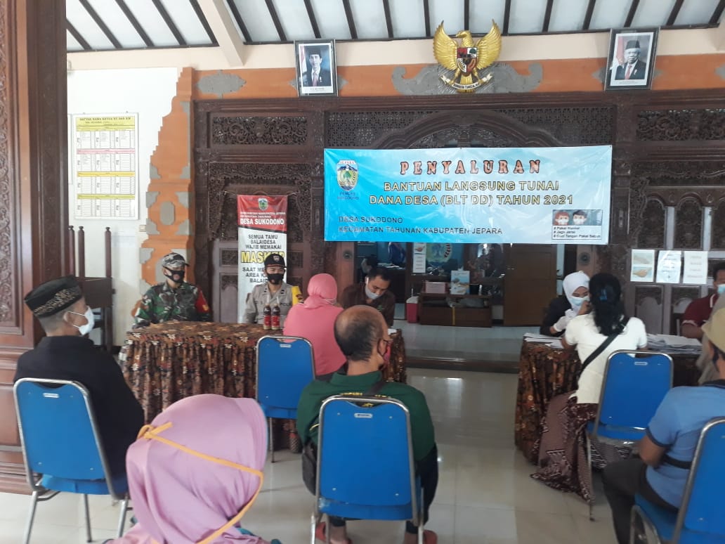 MediaSuaraMabes ,, Jepara – Babinsa Kopda Kusnadi anggota Koramil 11 / Tahunan bersama Bhabinkamtibmas melaksanakan pendampingan penyaluran Bantuan Langsung Tunai Dana Desa (BLT-DD) tahap tiga, kepada warga kurang mampu yang berada di Desa Sukodono, Kecamatan Tahunan. Selasa (25/5/2021).