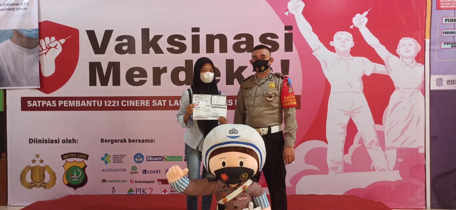 Gerai Vaksinasi Merdeka Satpas 1221 Pembantu Cinere menjadi tempat strategis untuk menggelar vaksinasi serentak yang diadakan sejak tanggal 22 September – 1 Oktober 2021 mendatang.