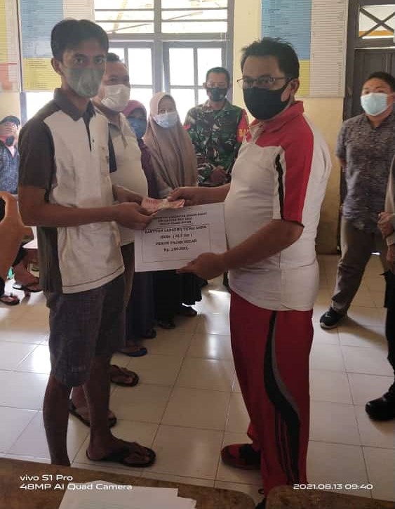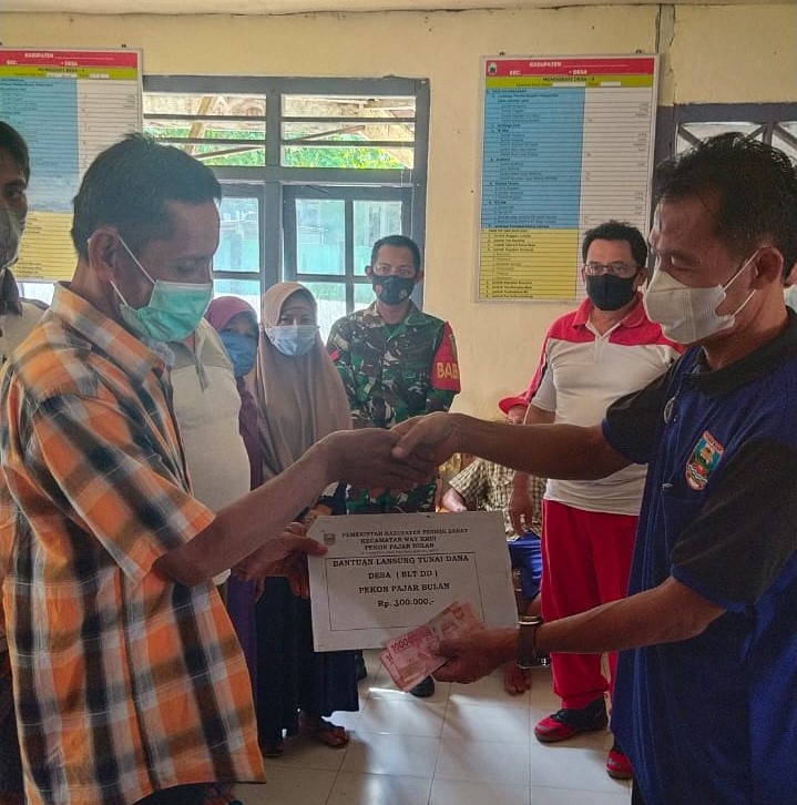 SuaraMabes, Pesisir Barat – Dana BLT-DD secara langsung disalurkan Pekon Pajar Bulan Kecamatan Way Krui Kabupaten Pesisir Barat Tahap 1 Tahun 2021 Bulan Maret April Dan Mei kepada 72 kepala keluarga (KK) Penerima yang terdampak sebesar 900 ribu per 3 bulan Covid-19.bertempat di Balai Pekon Pajar Bulan Jumat (13/08/2021).