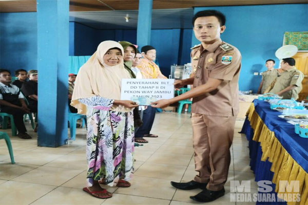 Penyerahan BLT-DD itu dipusatkan di Balai Pekon Way Jambu, Kecamatan Pesisir Selatan, diberikan kepada 24 Keluarga Penerima Manfaat (KPM) dengan besaran Rp 300 ribu rupiah per bulan.