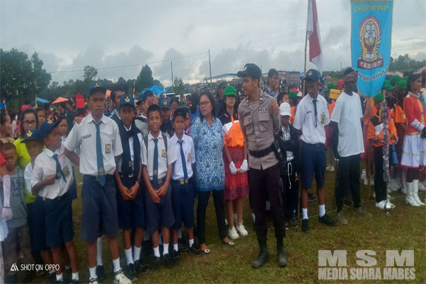 Namun guyuran hujan tidak menyurutkan semangat anak anak sekolah, para ASN dan TNI-Polri serta seluruh lapisan masyarakat.