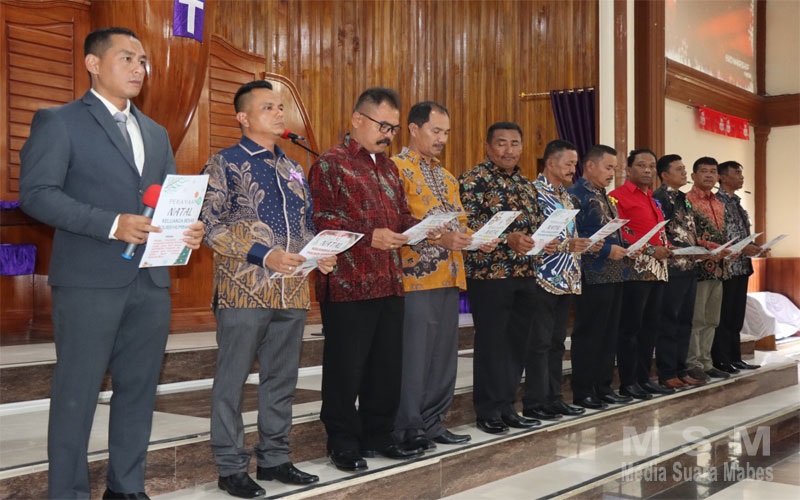 Dengan semangat kerendahan hati menyambut Kelahiran Kristus Melalui Pesan Polri Presisi, Berintegritas, Mengasihi, dan Melayani Guna Mewujudkan Pemilu Damai Menuju Indonesia Maju”, ucap AKBP Hary.