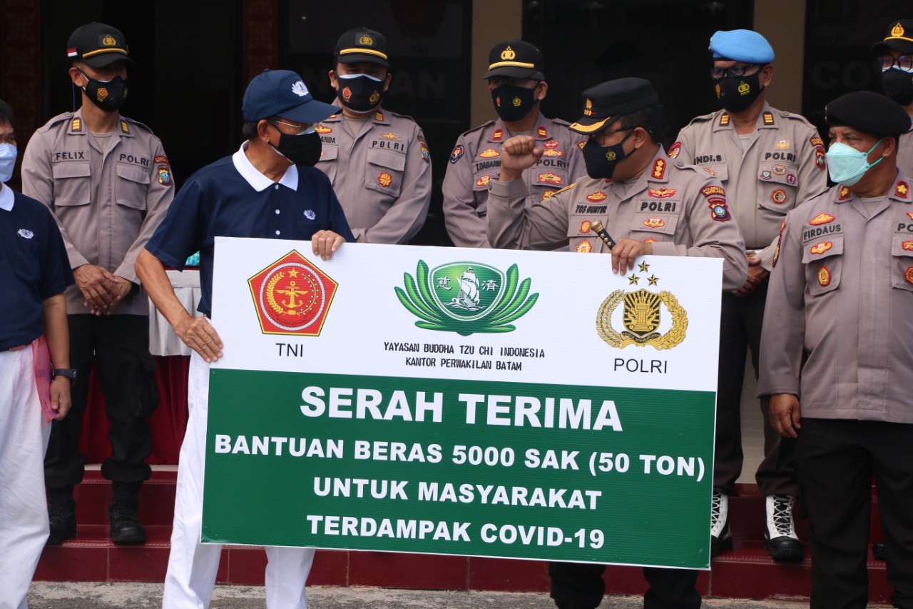 Penyerahan Bantuan Beras sebanyak 5000 Sak/ 50 Ton Beras ini diserahkan secara simbolis oleh Ketua Yayasan Budda Tzu Chi Batam (Rudi Tan) yang di hadiri juga oleh Wakapolresta Barelang AKBP Junoto, PJU Polresta Barelang serta Para Kapolsek Jajaran Polresta Barelang.