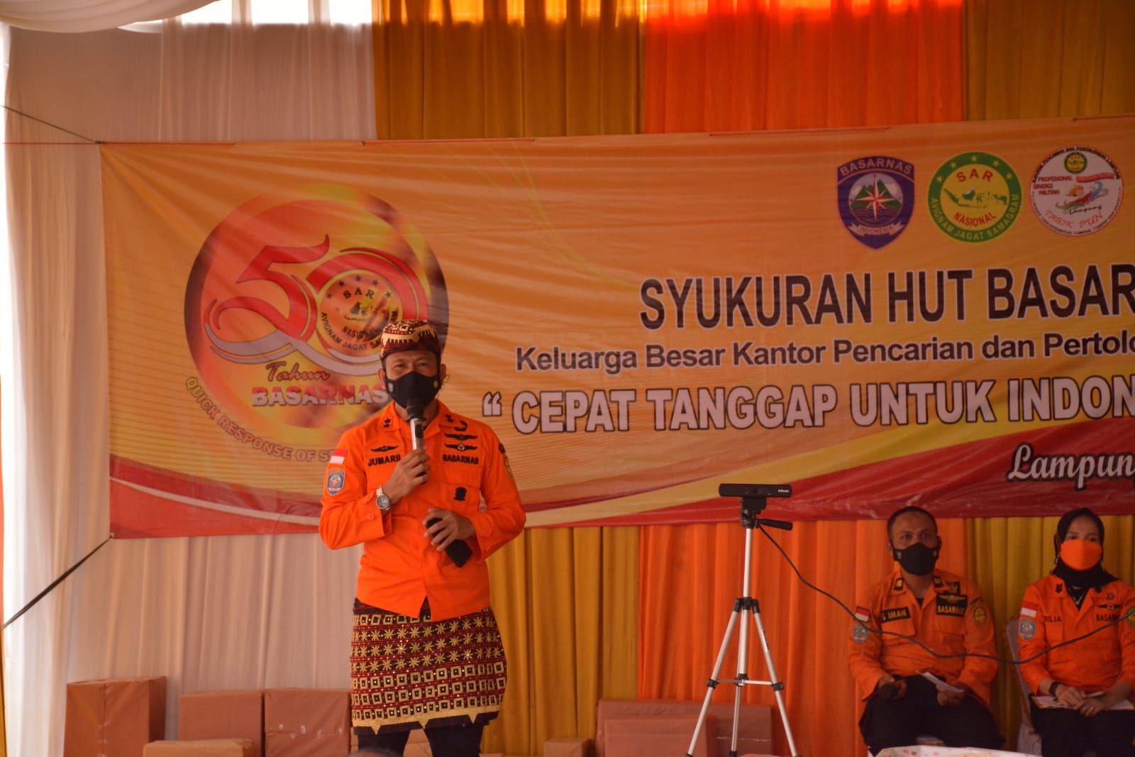 Pelaksanaan Upacara di Kantor SAR Lampung diikuti oleh seluruh personil Kantor SAR Lampung, baik dari rescuer dan ABK (krew kapal) dari KN SAR Basudewa dan dihadiri juga oleh Dharma Wanita Persatuan Kantor SAR Lampung. Bertindak sebagai Inspektur Upacara Kepala Kantor SAR Lampung Jumaril, S.E., M.M. membacakan amanat dari Kepala Basarnas Marsekal Madya TNI Henri Alfiandi. Dalam amanatnya beliau menyampaikan bahwa terdapat 4 pilar utama dalam keberhasilan Operasi SAR yang perlu ditingkatkan Basarnas di usianya yang ke-50 2022 ini.