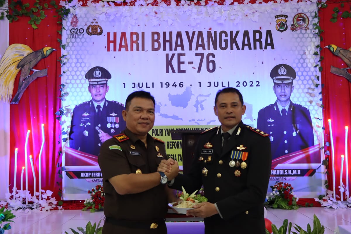 MediaSuaraMabes, Yapen – Puncak peringatan HUT Bhayangkara ke-76 yang jatuh pada 1 Juli 2022, secara serempak diperingati di seluruh Indonesia melalui upacara virtual yang dipimpin langsung oleh Presiden Jokowi selaku Inspektur upacara, Selasa (5/7/22).