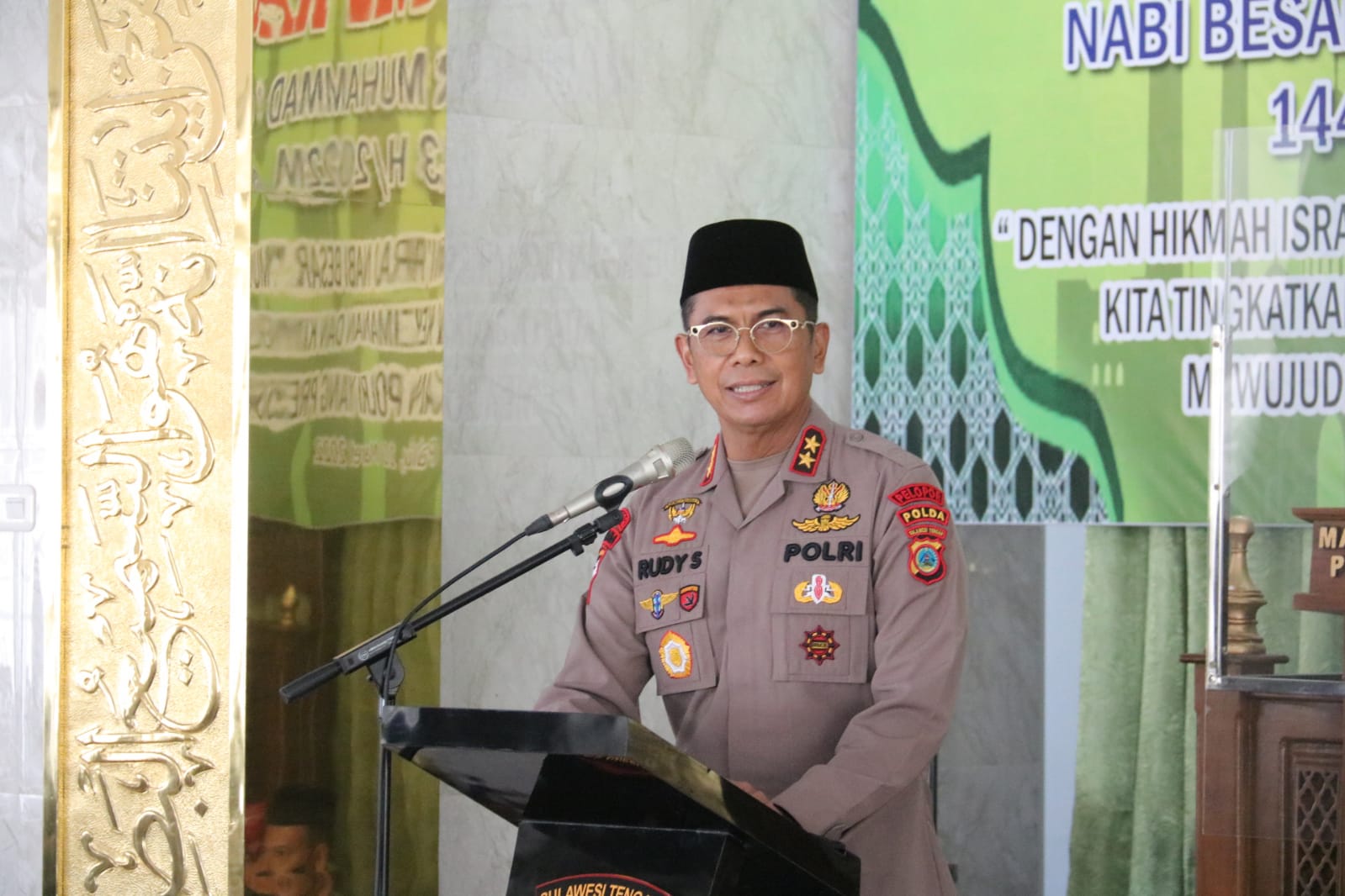 MediaSuaraMabes, Palu -Isra Miraj Nabi Muhammad SAW 1443 H diperingati Polda Sulawesi Tengah di Masjid Ar Rahman, Kamis (10/3/2022). Peringatan kali ini mengangkat tema dengan hikmah Isra Miraj Nabi Muhammad SAW kita tingkatkan keimanan dan kinerja guna mewujudkan Polri yang presisi. Dalam sambutannya Kapolda Sulteng Irjen Pol. Rudy Sufahriadi mengatakan Isra Miraj merupakan perjalanan yang luar biasa yang dilakukan Rosullulah SAW, yang dengan mata Iman Islamlah kita bisa melihatnya dan meyakininya,