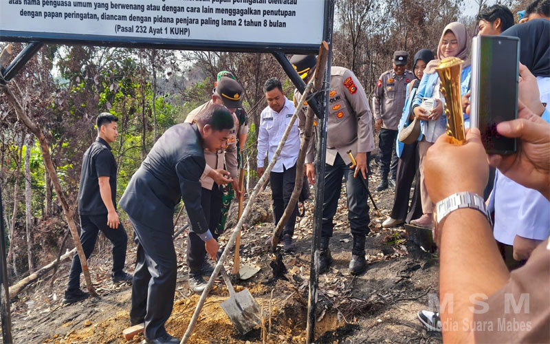 Plang peringatan dipasang permanen di lahan seluas 12 hektare yang sebelumnya dilanda karhutla. Selain itu, dilakukan juga penanaman pohon secara simbolis di lahan yang terbakar.