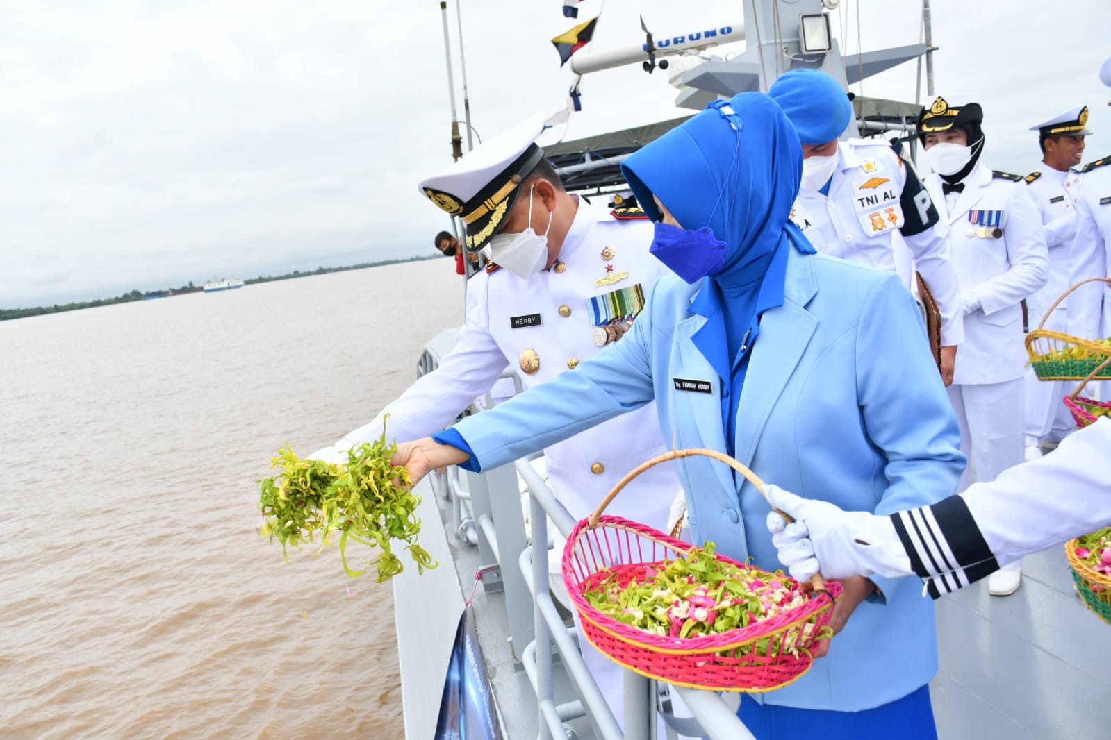 MediaSuaraMabes, Banjarmasin — Dalam rangka memperingati Hari Dharma Samudera yang Ke-60 tanggal 15 Januari 2022 dengan tema “Mengenang Pertempuran Laut” Lanal Banjarmasin melaksanakan upacara tabur bunga diperairan Muara Barito dengan menggunakan KAL Kumai II-13-51. Bertindak sebagai Inspektur Upacara Komandan Pangkalan TNI AL (Danlanal) Banjarmasin Kolonel Laut (P) Herbiyantoko, M.Tr.Hanla.