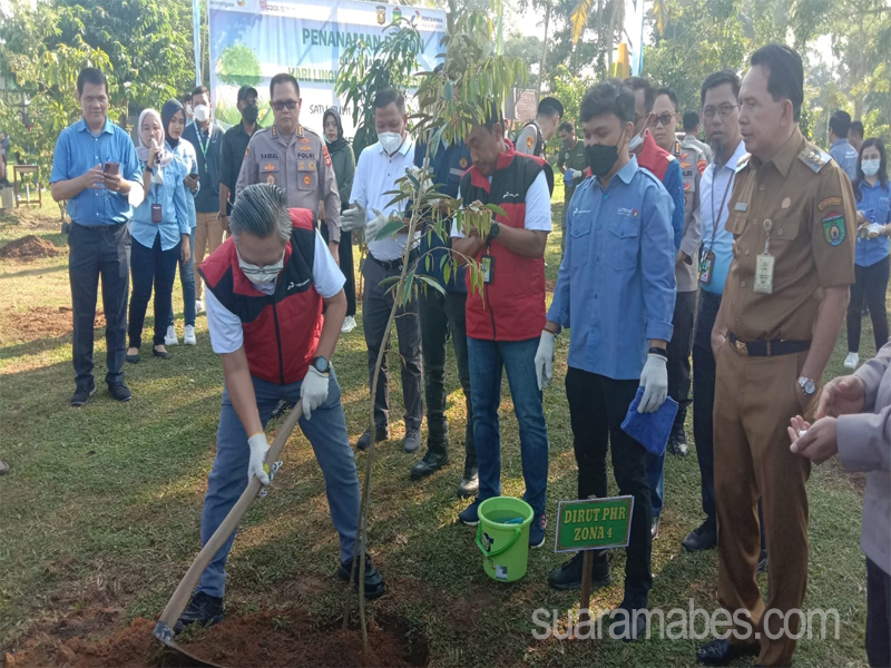 MediaSuaraMabes, Prabumulih – Satuan Kerja Khusus SKK Usaha Hulu Minyak dan Gas, Bumi (SKK Migas) bersama Pertamina Hulu Rokan (PHR) Zona 4, menggelar kegiatan penanaman pohon yang secara simbolis dilakukan di lapangan golf Komperta Prabumulih dalam rangka memperingati hari lingkungan hidup sedunia. Selasa (07/06/2022)