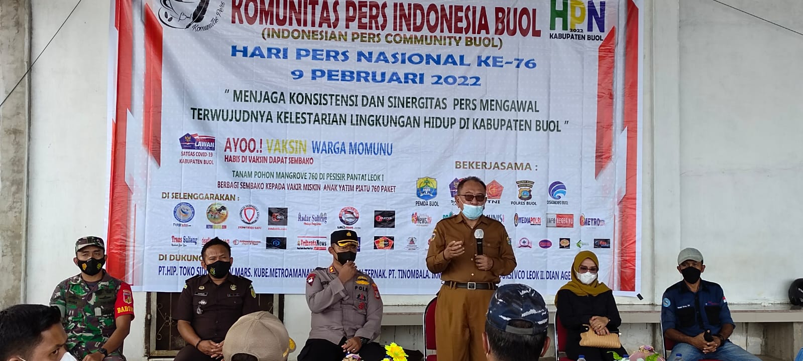 Kegiatan ini merupakan rangkaian dari acara menyambut hari pers nasional 9 pebruari 2022 yang ke-76 di kabupaten buol.yang di selenggarakan 21 media online,cetak.tv.yang tergabung dalam komunitas pers indonesia buol Komunitas pers indonesia buol mengucapkan terima kasih yang sebesar besarnya atas dukungan Prokopim Pemda buol,TNI-POLRI,PT.HIP.BRI pogogul cabang buol.dan para donatur yang saya tidak bisa sebutkan satu persatu,ungkap bambang.