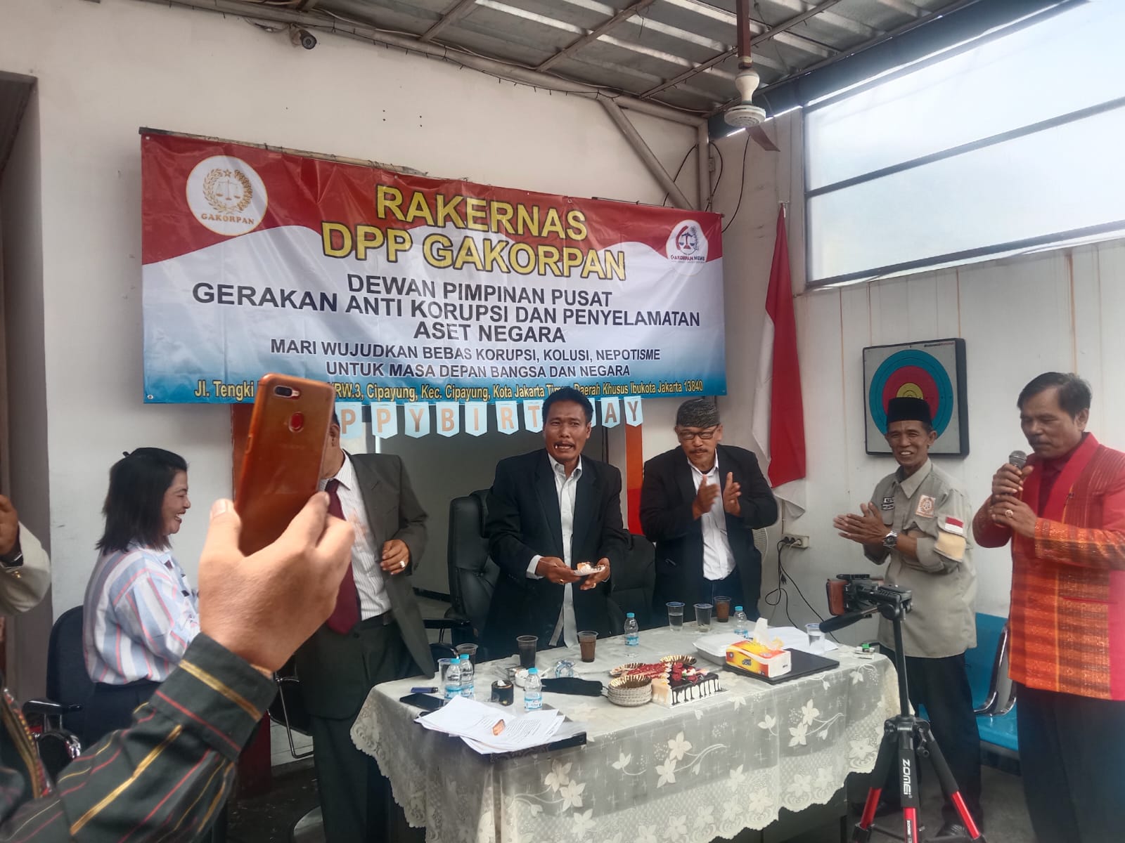 Pada sambutannya ketua umum Gerakan Anti Korupsi dan Penyelamatan Aset Negara (Gakorpan) Abednego Panjaitan mengatakan,”puji syukur atas kehadirat tuhan yang maha esa sehingga kita dapat saling silahturahmi dalam rangka HUT Gakorpan yang ke 5 yang sekaligus Rakornas.