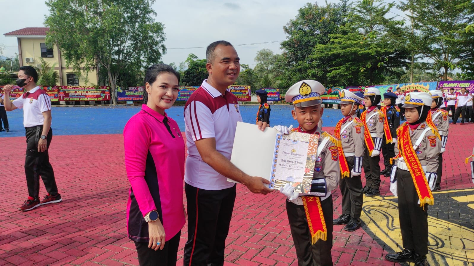 Kegiatan dilanjutkan dengan pemberian Piagam Penghargaan dan Paket bingkisan dari Bapak dan Ibu Kapolres kepada adik-adik Pocil yang telah meraih 2 (dua) Piala sekaligus yakni Juara Harapan 1 dan Juara 3 PBB Terbaik dalam perlombaan Polisi Cilik Se-Polda Lampung yang dilaksanakan di Gedung Aula Pramuka Bandar Lampung hari Selasa yang lalu (20/09).