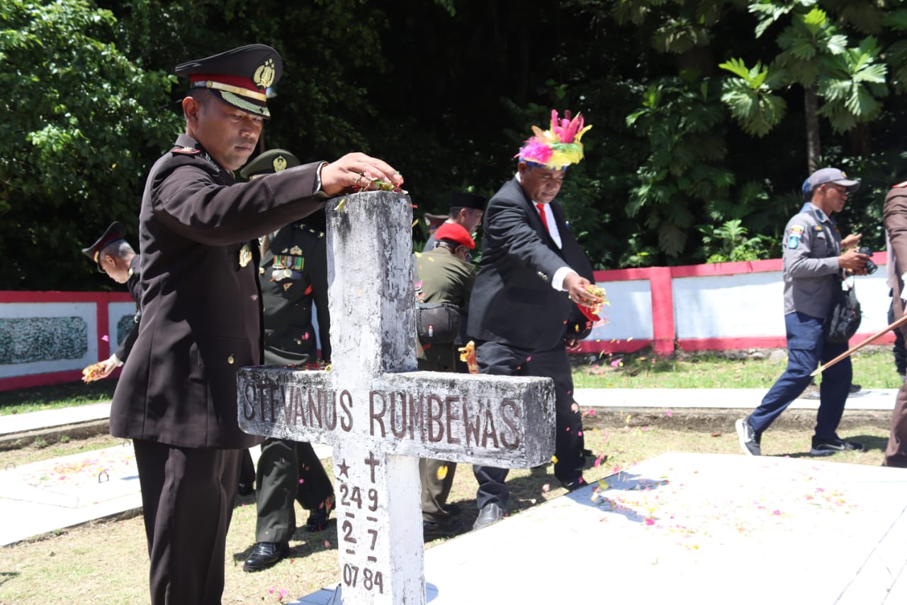 Peringati HUT RI ke-77 Kapolres Yapen Bersama Forkopimda Yapen Ziarah Makam Pahlawan