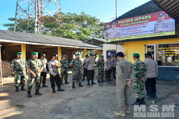 MediaSuaraMabes, Jepara — Perkuat sinergitas TNI-Polri, anggota TNI dari Koramil 04/Pecangaan jajaran Kodim 0719/Jepara anggota Polri dari Polsek Pecangaan menggelar apel gabungan di halaman Mapolsek Pecangaan, Kabupaten Jepara. Jumat, (12/5/2023).