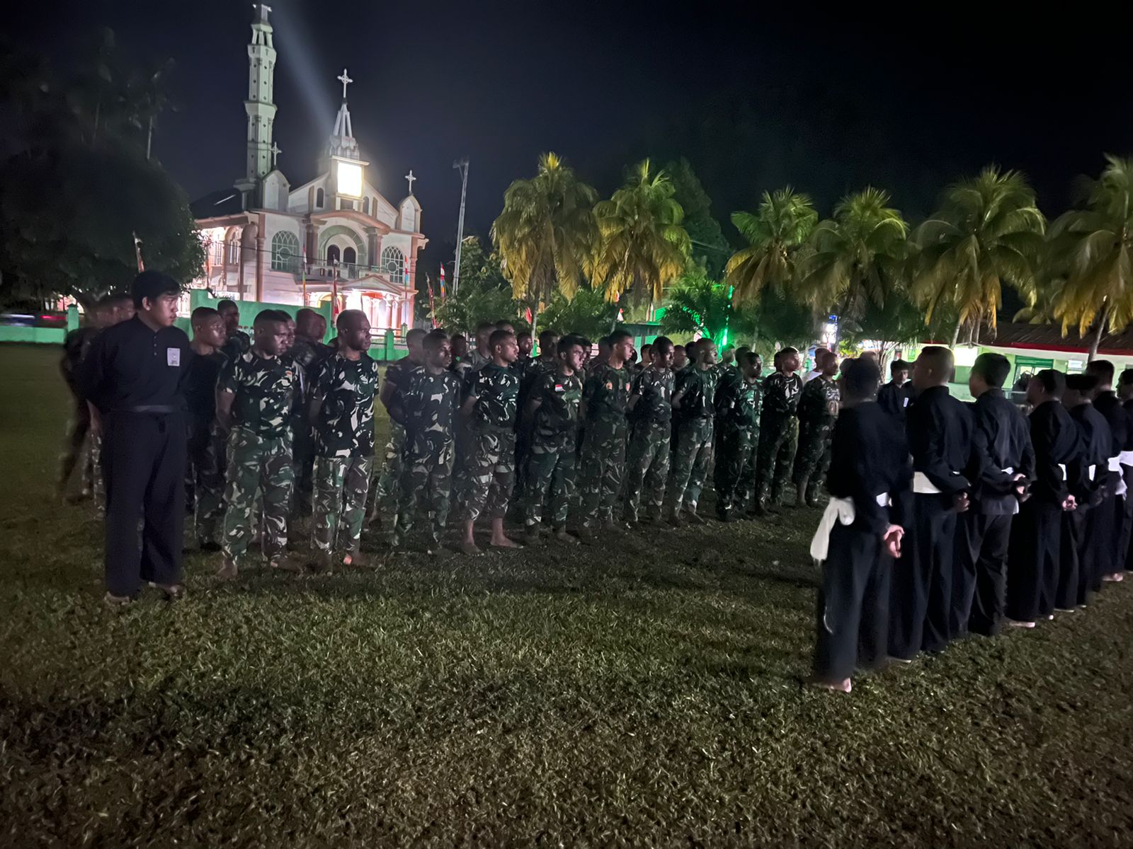 MediaSuaraMabes, Yapen – Berlokasi di Lapangan Makodim 1709/Yawa Jl. Maluku Distrik Anotaurei Kabupaten Kepulauan Yapen, Personel Bintara Remaja Kodim 1709/Yawa bersama Bintara Remaja Polres Kepulauan Yapen dan Perguruan Silat PSHT (Persaudaraan Setia Hati Terate) Cabang Yapen Waropen melakukan Latihan Pencak Silat bersama, Minggu (04/09/2022).