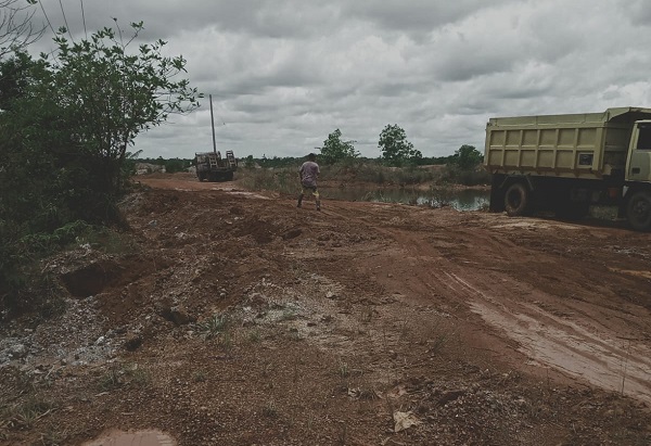 Bantuan pembangunan infrastruktur ini diserahkan PT Timah Tbk kepada Organisasi Masyarakat Kamek, Damar untuk pembuatan jalan masyarakat.